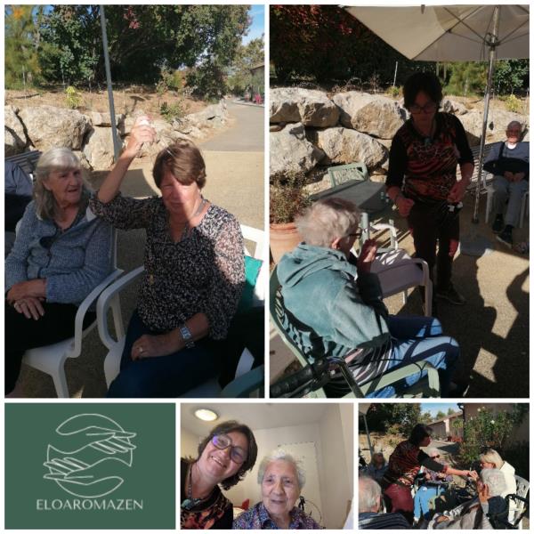 Avec des huiles essentielles, Elodie procure des massages intuitifs de bien-être. Le temps d'un après-midi, collaborateurs et résidents peuvent bénéficier d'un moment individuel avec notre aromathérapeute. Dans un second temps, c'est un atelier collectif qui est proposé avec des massages des mains, de la tête et des stimulations olfactives avec différentes huiles essentielles.