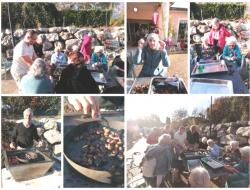 Installé à l’extérieur de notre résidence, il a sorti son brasero pour faire cuire nos délicieuses gourmandises juste devant l’entrée. La délicieuse odeur de cuisson s’est répandue dans tout le hall de notre EHPAD aiguisant l’envie de dégustation de nos aînés toujours prêts à se régaler !
