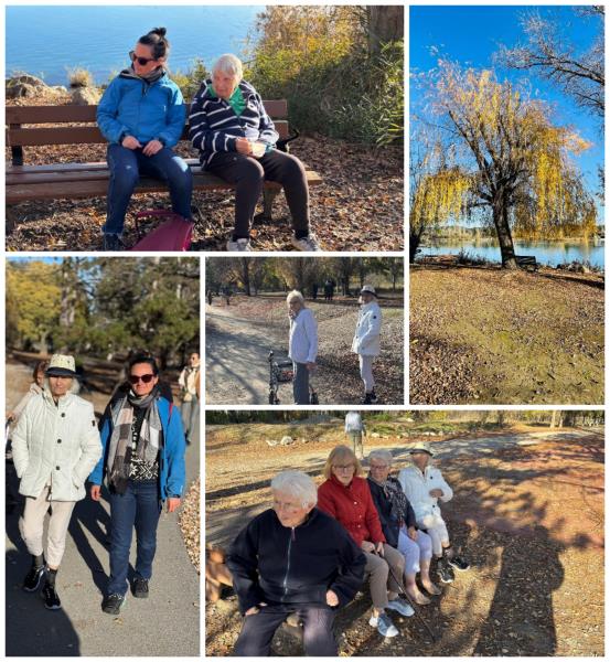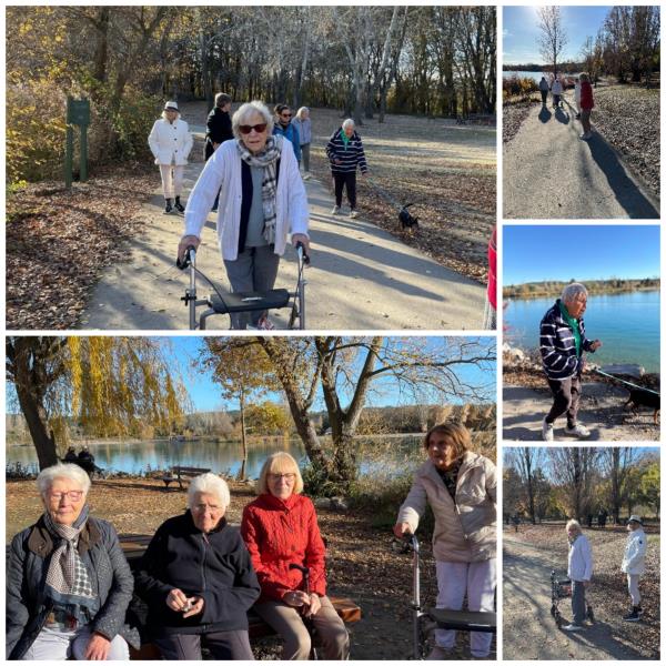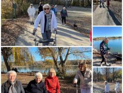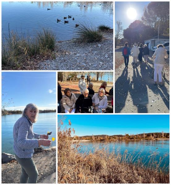 En ce mois de novembre, c'est au lac des Vannades que nous a conduit notre sortie de marche thérapeutique. En compagnie de Lou notre monitrice en activité physique adaptée, Valérie notre psychomotricienne et bien sûr Catherine notre animatrice, la joyeuse petite troupe de l'Etoile de Haute Provence a pu profiter d'une superbe journée automnale. Les feuilles des arbres sont très avancées dans leur chute cependant, nos ainés ont pu apprécier les superbes couleurs de la saison.