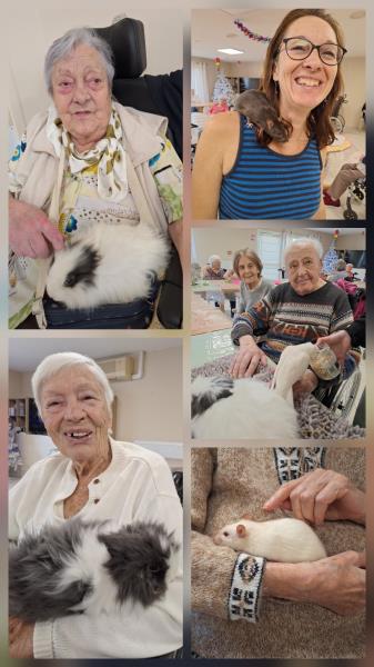 Pour le plus grand bonheur de nos résidents, nous avons reçu cet après-midi la visite des animaux de l'association l’échappée bêle pour notre séance mensuelle de médiation animale.