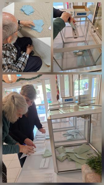 Après des réunions d'information et une campagne électorale rondement menée par les candidats, tous les électeurs se sont rendus aux urnes. Résidents, familles et représentants des usagers, bénévoles et membres du personnel, chaque acteur de la vie de la résidence a pu glisser à discrétion un bulletin dans une enveloppe et le déposer dans la boite sécurisée pour faire valider son vote. S'en est suivi le dépouillement sous haute surveillance des candidats....